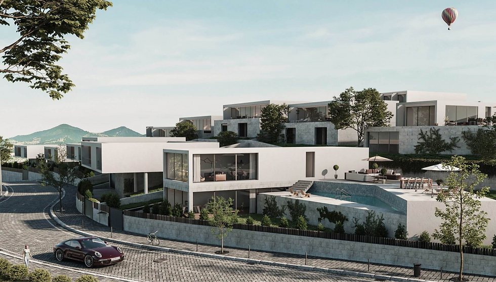 Porta do Vale is a luxury development that perfectly combines proximity to the city center with the tranquility of a natural setting. This project consists of 20 V3 and V4 villas with private pools, designed to offer families a high level of comfort and quality of life. Each villa boasts exclusive and customizable features, crafted with premium materials.